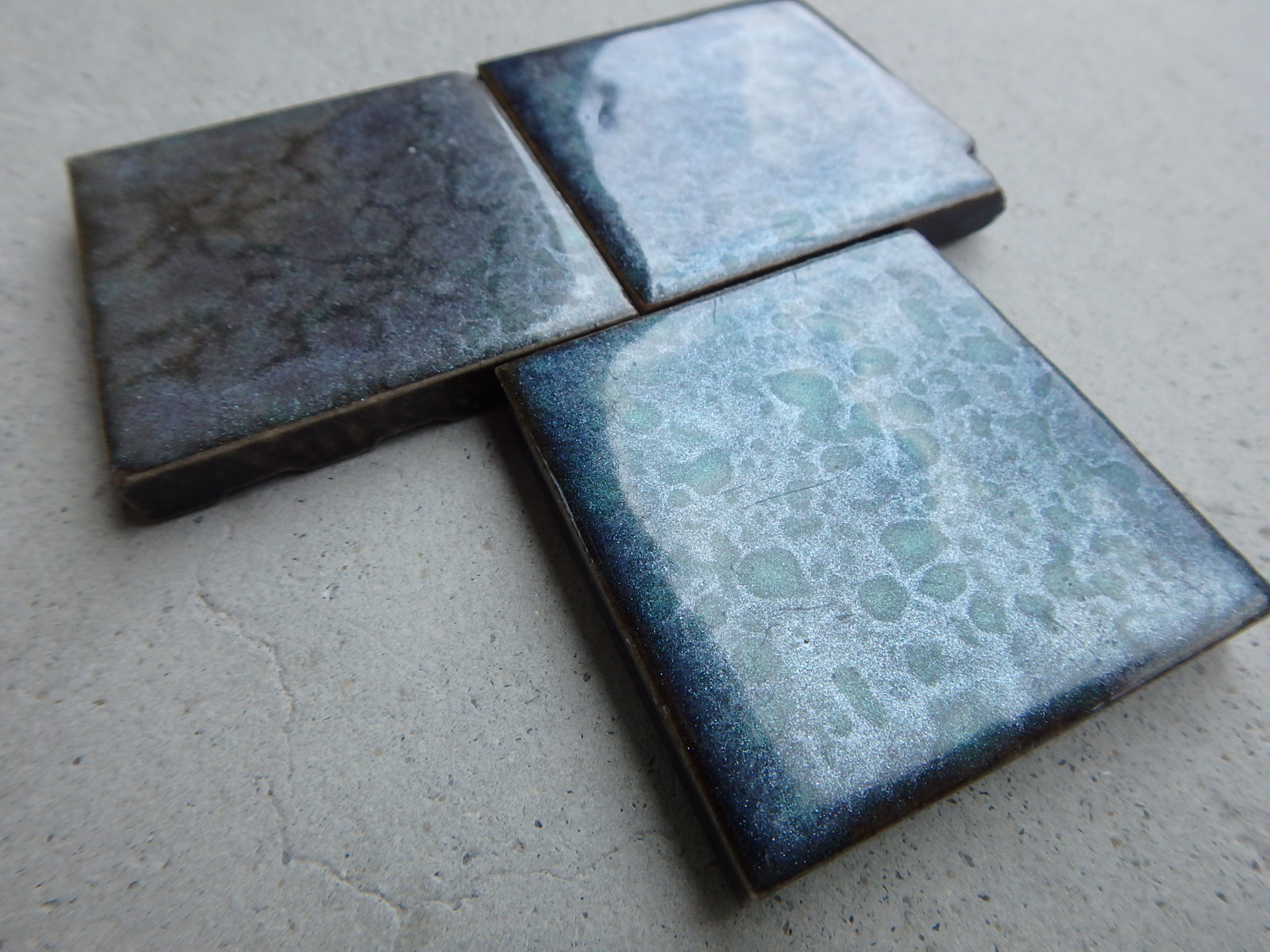 中島建築のN君からの依頼で曜変天目のような(←さらっと無理を言います笑)タイルをつくって欲しいとのこと。