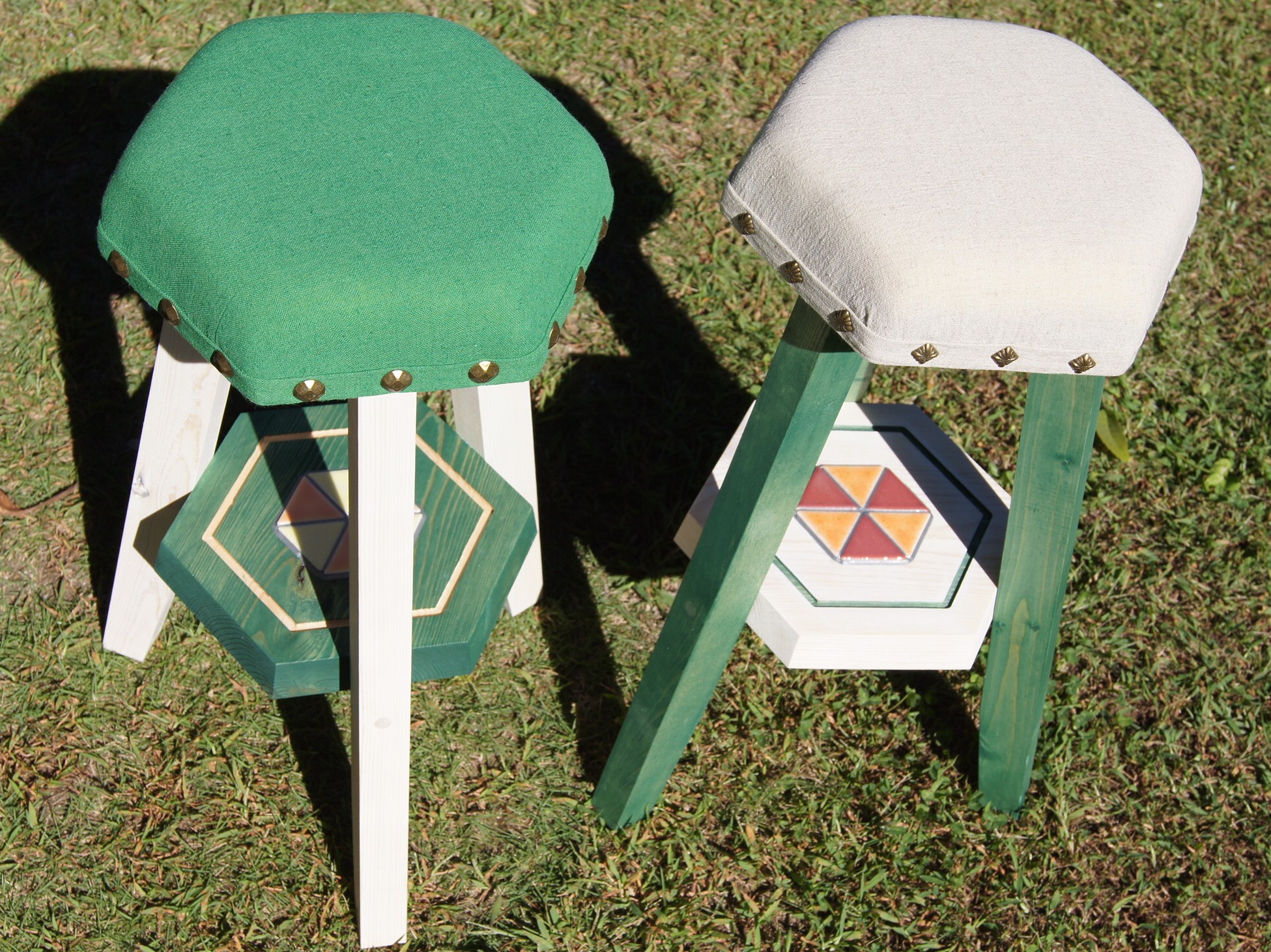 ・座面、中板、タイルの六角形の向きがすべて同じにしてあります。
