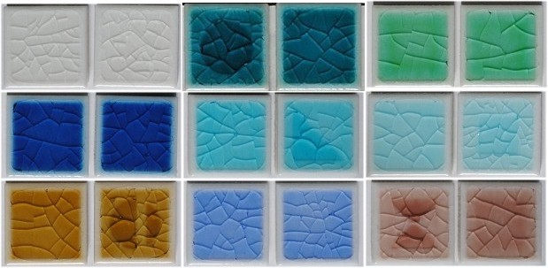 こちらは生産品。色指定の対応できます。白い素地に貫入釉を施したきれいなタイルです。